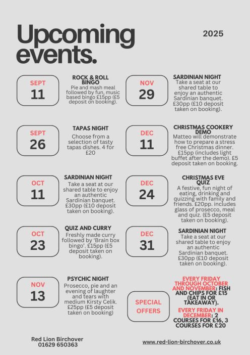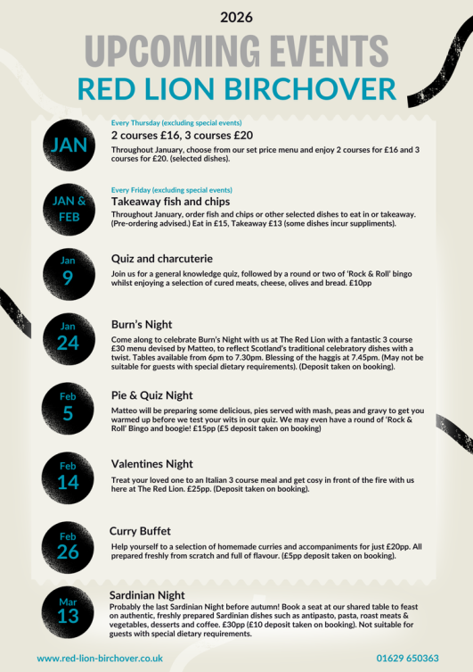 To keep up to date with all of our events and developments, please like us on Facebook (Red Lion Birchover) or visit www.red-lion-birchover.co.uk