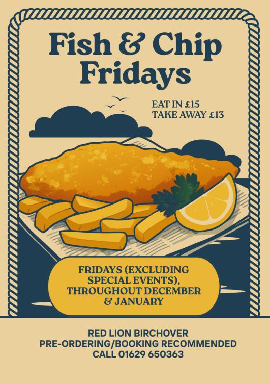 Enjoy freshly cooked fish and chips every Friday through November for £15 (Eat in or takeaway)