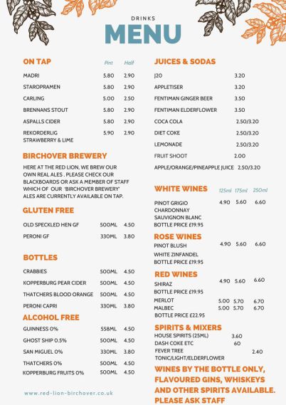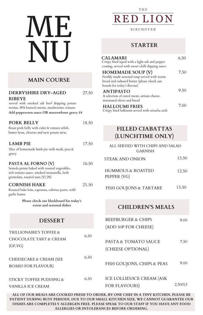 (The menus featured above are indicative of the type of dishes available, but may not be on offer when you visit as we sometimes alter our menus according to seasonality/availability of ingredients).
